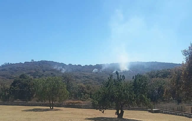 El área de seguridad amplió: “Desde el pasado lunes comenzó el siniestro, pero fue contenido una parte, con lo que prácticamente teníamos a la mano y en lo que llegaban las brigadas, las cuales ingresaron por el fraccionamiento el Roble, y estuvieron trabajando hasta las 4 de la tarde, pero en cuestión de horas comenzó nuevamente”.