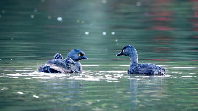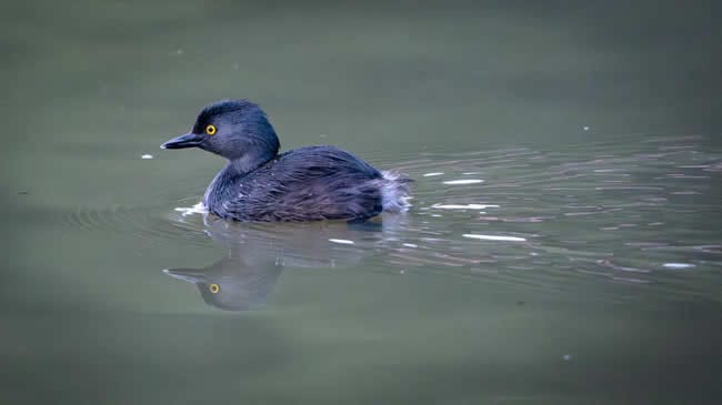 El zampullín macacito o zambullidor, es un ave acuática que bucea, imagen en el Lago de Haras